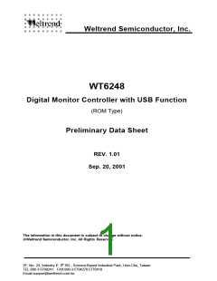 The WT6248 is a microcontroller for digital controlled monitor with Universal Serial Bus (USB) interface. It