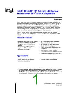 Intel® TXN3101101 Tri-rate LC Optical Transceiver SFF* MSA Compatible 26 April 2007