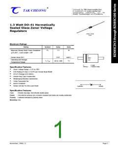 This datasheet presents technical data of Tak Cheong’s Zener Diodes. Complete specifications for the individual devices are