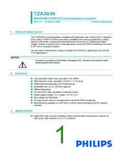 The TZA3036 is a transimpedance amplifier with Automatic Gain Control (AGC), designed