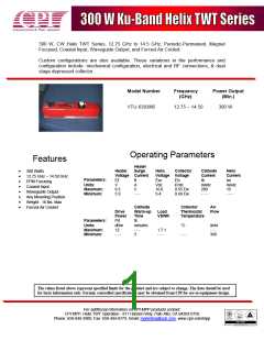 300 W, CW Helix TWT Series, 12.75 GHz to 14.5 GHz, Periodic-Permanent, Magnet
