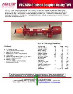 The VTS-5754F pulsed-coupled cavity TWT covers 3.1 GHz to 3.6 GHz with 160 kW peak output power,