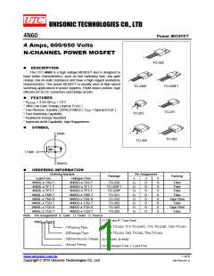 4N60-TA3-T 4安培, 600伏特N沟道功率MOSFET[ 4 Amps, 600 Volts N-CHANNEL POWER MOSFET ] 8 页